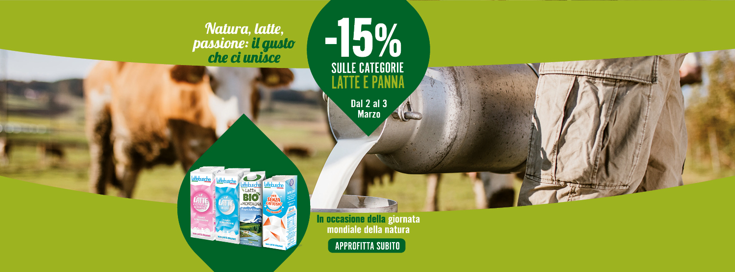 Per il 2 e 3 marzo, tutta la categoria Latte e Panna è scontata del -15%. Approfitta subito!